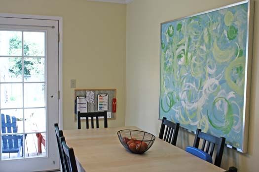 It’s random, but I like the splash of color it adds to our dining room. I also like that it’s original art, created by us. And that it cost about $20 total. And that it’s better than the initial mauve disaster.