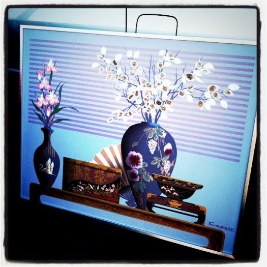 But then the voice on the PA system said purple tags were half off that day. The painting had a purple tag. I kept shopping, browsing the kids’ clothes, the furniture, the plates, but the painting was stuck on my brain. I left without it. I mean… it was hideous.