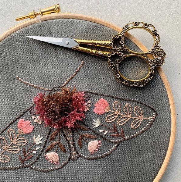 Carole Fenwick, the artist behind Maggie Magoo Designs, creates stunning patterns and prints. She’s a surface pattern designer, yet it’s a skill that takes many forms—from fabric to enamel pins to embroidery patterns. This gorgeous moth embroidery represents just a fraction of her body of work.