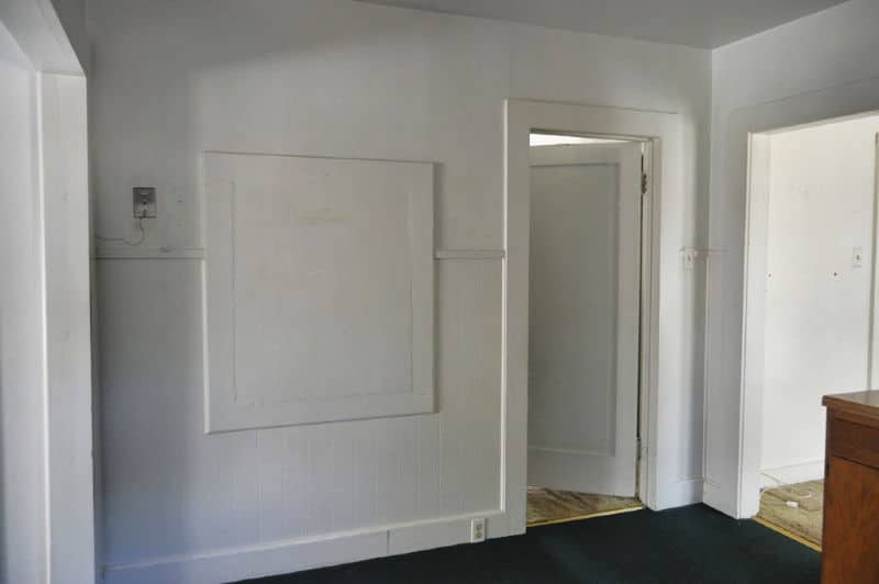 The back wall was originally the back of the house (two extra bedrooms were added probably in the ’50s), which meant ripping off the old drywall revealed original shiplap.