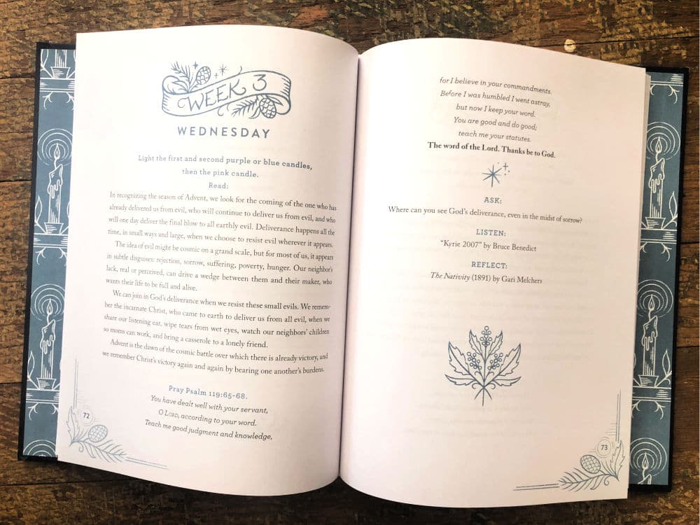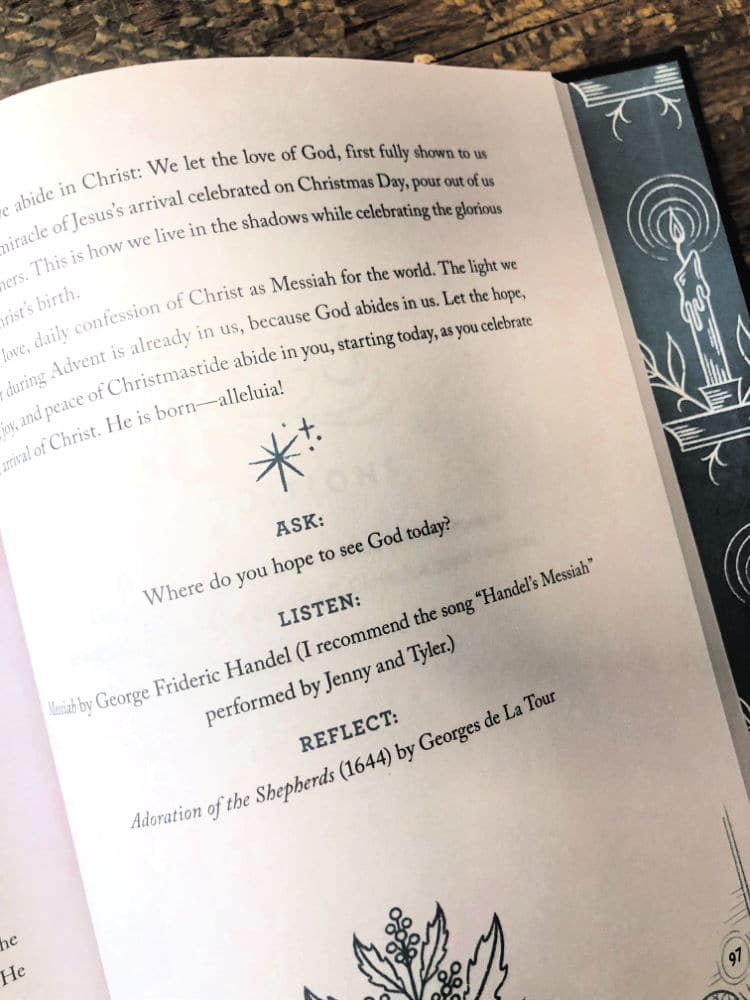 And I wanted something that didn’t make me feel perpetually behind, where if we didn’t do a day’s reading we wouldn’t have to catch up the next day. I wanted to flip the page and move on to the next day’s reading with no seamless interruption — because that’s the holidays, right? There’s a lot going on.