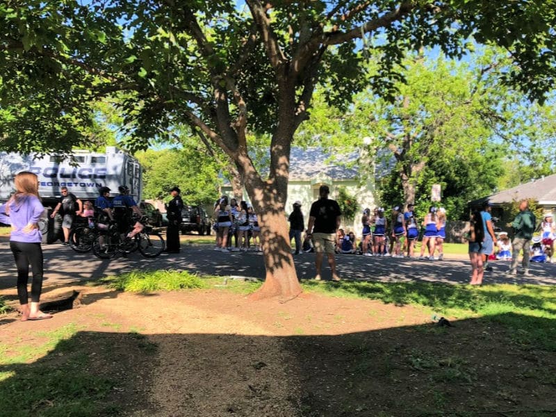 the pre-spring-town-parade gathering outside our front door
