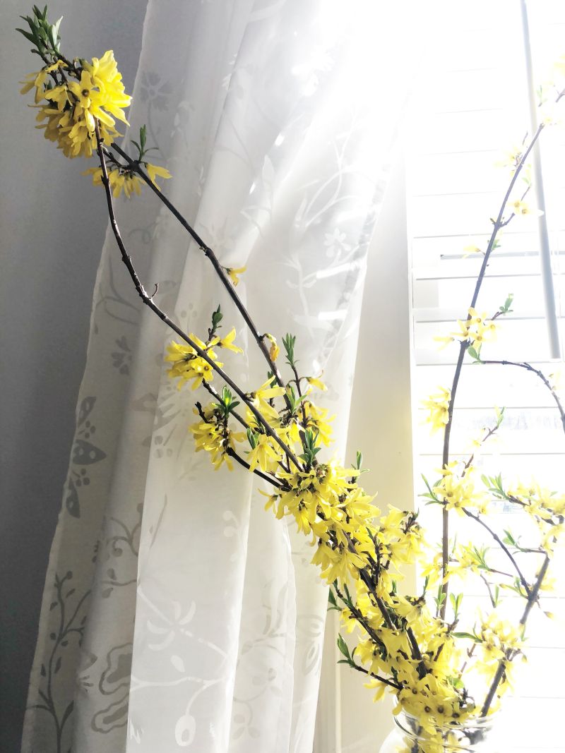 Gather green branches and yellow flowers and scatter them throughout your home for bursts of happiness. Put a birdfeeder outside your kitchen window.