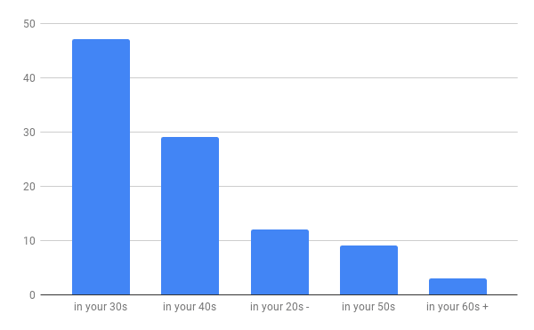 Almost half of you are in your 30s, followed by almost a third in your 40s. Then there’s about 12 percent of you on either side, making us decidedly smack in that age of career building, raising kids, and figuring out the messy middle of life. Not surprising, since that’s generally what we talk about here.