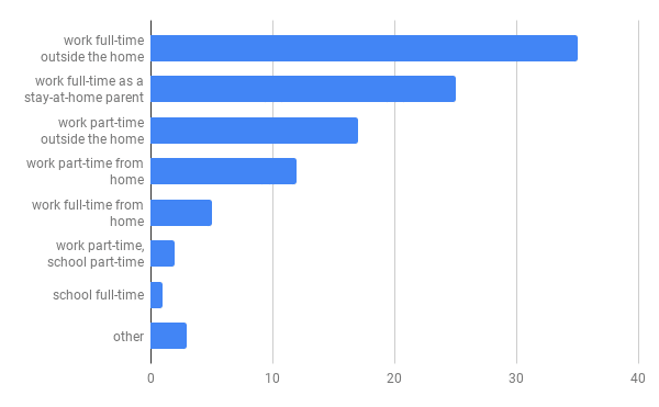 A good number of you are full-time stay-at-home parents, followed by a healthy mix of “everything else.” I’m in that small-ish category of full-time working from home, so this is a good reminder to make sure and keep my blinders off, lest I forget most of you have a different work situation than me.