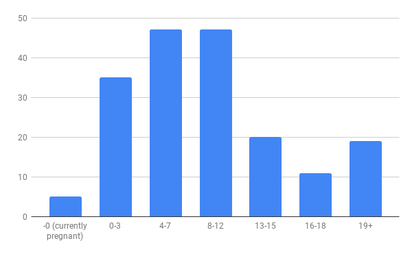 And if you do have kids, most of them are in that elementary-middle school age of 4-12ish. There’s also a sizable portion of you with little-littles, followed by teens and adult kids.