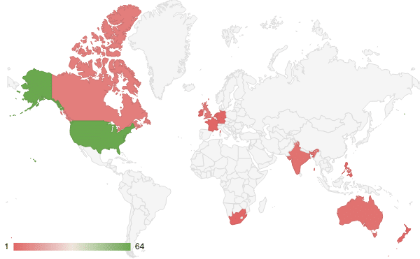 Most readers and listeners are in the U.S., followed by Canada, Australia, the U.K., New Zealand, South Africa, India, the Philippines, Germany, France, and the Netherlands.