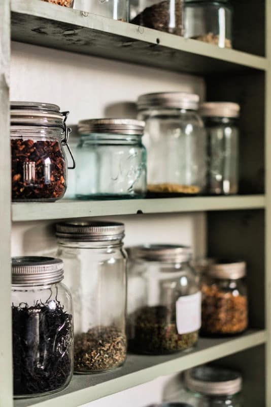 38. Repurpose glass jars as leftover containers and bulk storage, especially in the kitchen.