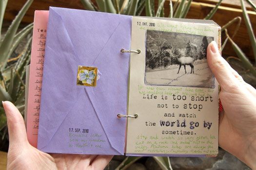 I keep a simple journal like the ones from my shop. All I have to do is hole punch postcards and letters (like the one above from my grandma) and put them in my journal. I do the same with photographs and ticket stubs. I’ll add my own thoughts—voila, a themed collection.